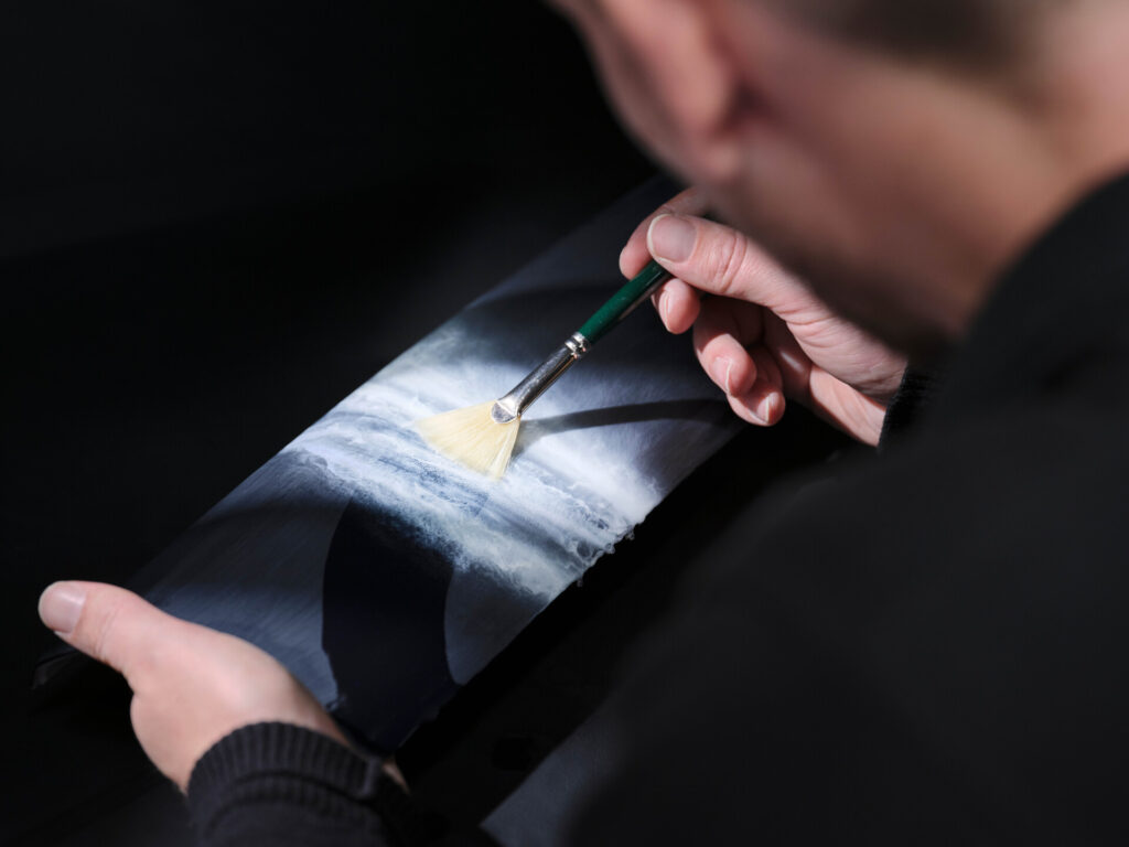 Getting the wave effect right took two months of work. Pigment is airbrushed onto wet lacquer, then shaped with a fine brush while air is directed across the surface to move the paint naturally. Rolls-Royce now employs full-time painters working solely on this kind of detail. It is not something you notice immediately, but once you see it, the interior becomes something quite different.
