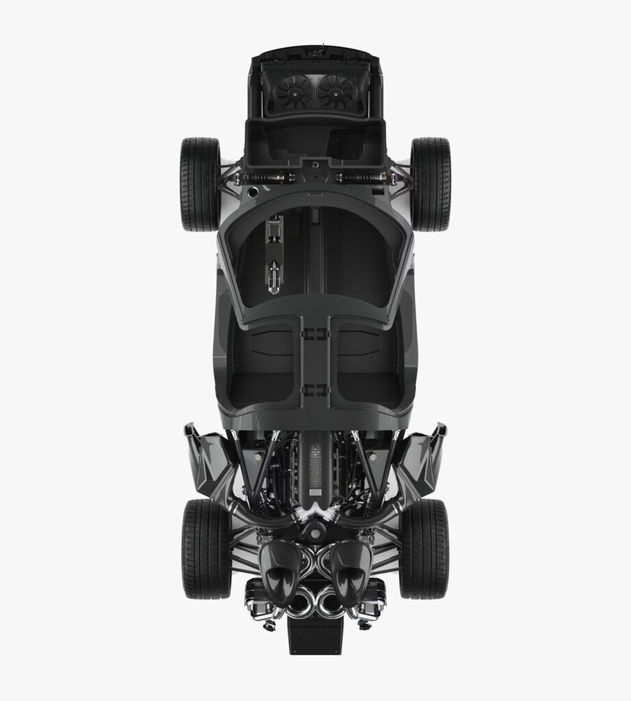 The 01 Zagato employs an LMP1-inspired carbon fibre structure throughout, including monocoque, subframes, crash members, and all body panels, achieving a remarkable sub-1,200 kg dry weight. Buyers can choose exposed carbon fibre or bespoke paint and weave patterns, ensuring each car is unique.