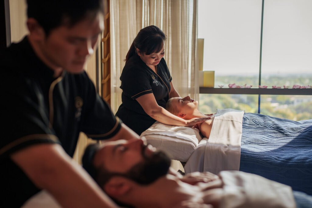 The Pearl Spa and Wellness at Jumeirah offers Together Time Massages designed for couples, available in 60 or 90-minute sessions within private suites. Couples can also extend their visit with extra time in the suite, enjoying facilities such as a steam room, bathtub and outdoor terrace.