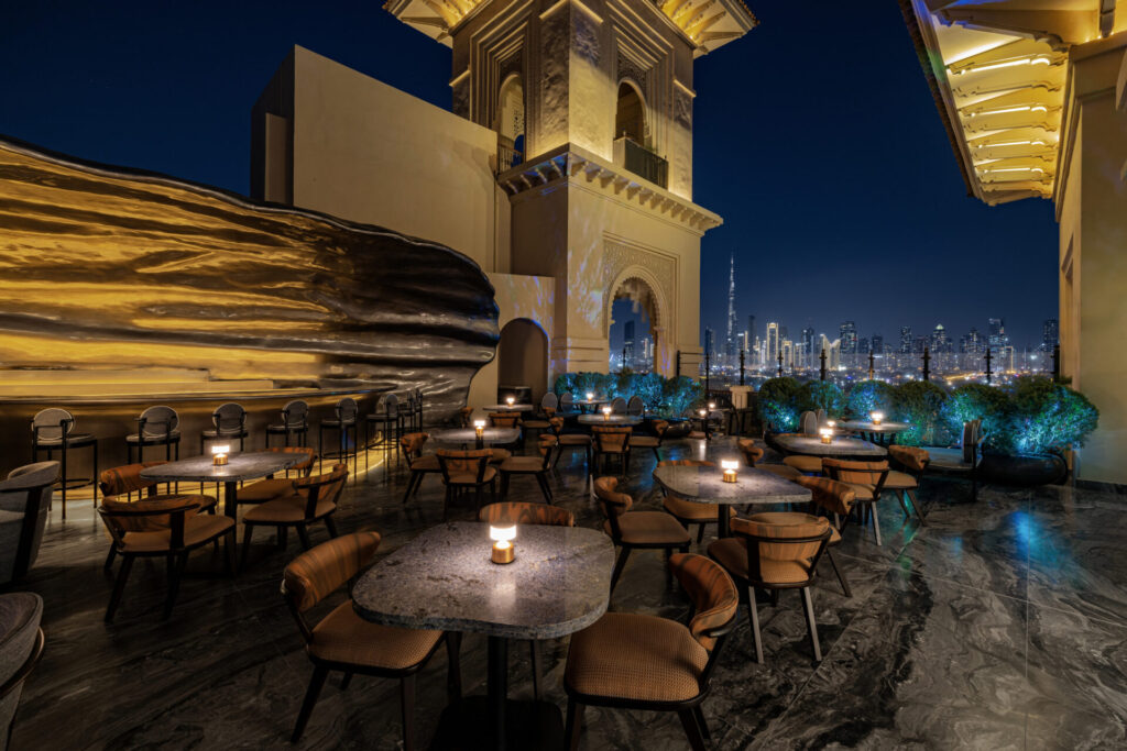 Mercury Rooftop becomes one of the city’s most romantic spots on 14 February, welcoming guests from early evening until late. Live saxophone music fills the space from 10:30pm to 1:00am, while couples can capture the moment at a rose-themed Perrier-Jouët photo corner. À la carte desserts complete the evening, all set against views of Dubai’s sparkling skyline.