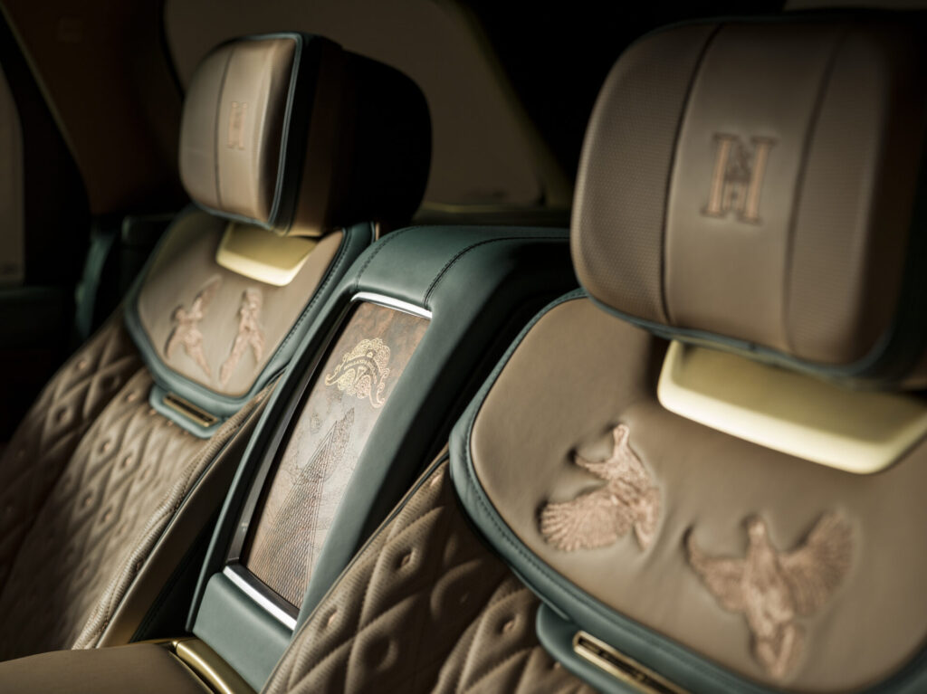 Those twenty-three-inch multi-spoke forged alloy wheels deserve particular mention. Designed exclusively for this edition, each features a self-levelling centre cap finished with the H&H hallmark. The solid aluminium side vent detailing incorporates an engraving of Holland & Holland’s distinctive ‘Royal’ scroll, surrounding hand-crafted ingots bearing each brand’s emblem. At the rear, a full-width illuminated light bar incorporates the Overfinch blade emblem, integrated with a dual-finish lower tailgate appliqué.