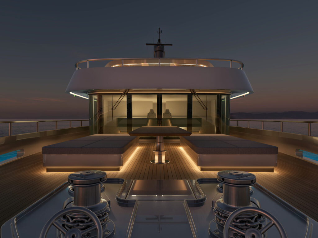 “There were several defining moments. One was the development of the “Lightwell”, which is a vertical architectural staircase that carries light from the top of the yacht through the center of the vessel, and it completely transformed the interior.