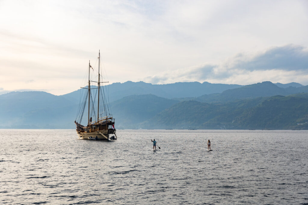 The voyage then turns toward Komodo, where the island’s legendary dragons are observed in their natural domain. Days are spent snorkelling in crystalline waters, wandering deserted beaches, and diving over vibrant coral gardens, before evenings gather passengers around intimate beach barbecues beneath a tropical sky.