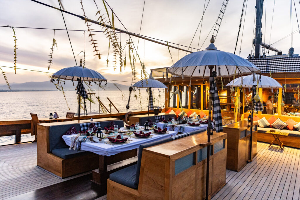 Built according to centuries-old phinisi shipbuilding traditions, Silolona and Si Datu Bua blend Indonesian craftsmanship with the comforts expected by an executive-level guest. Constructed from ironwood and teak, Silolona accommodates twelve guests in six suites, while the more intimate Si Datu Bua hosts six guests across three. Private charters remain available at £14,000 per night for Silolona and £8,500 for Si Datu Bua.