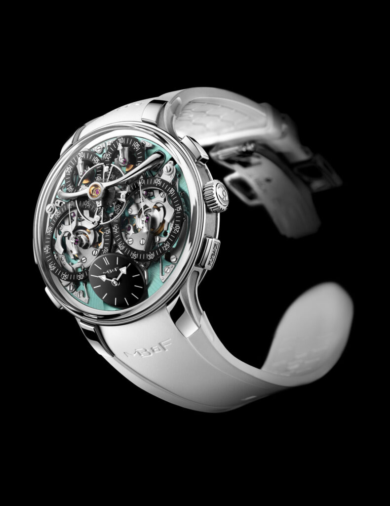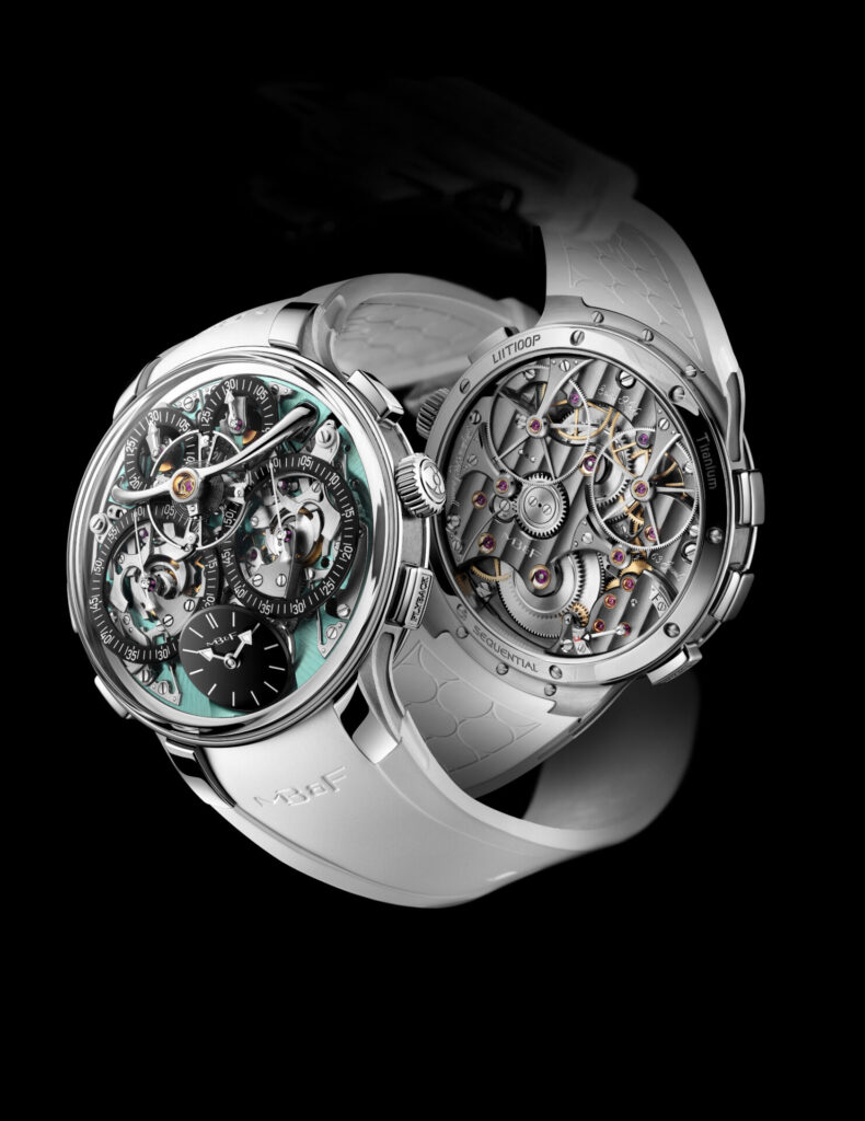 The 2026 release brings everything together. Titanium construction, aquamarine aesthetics, improved legibility through the tilted time dial, and flyback functionality that operates with near invisibility. The LM Sequential Flyback EVO offers timing capability that changes how elapsed time can be measured.