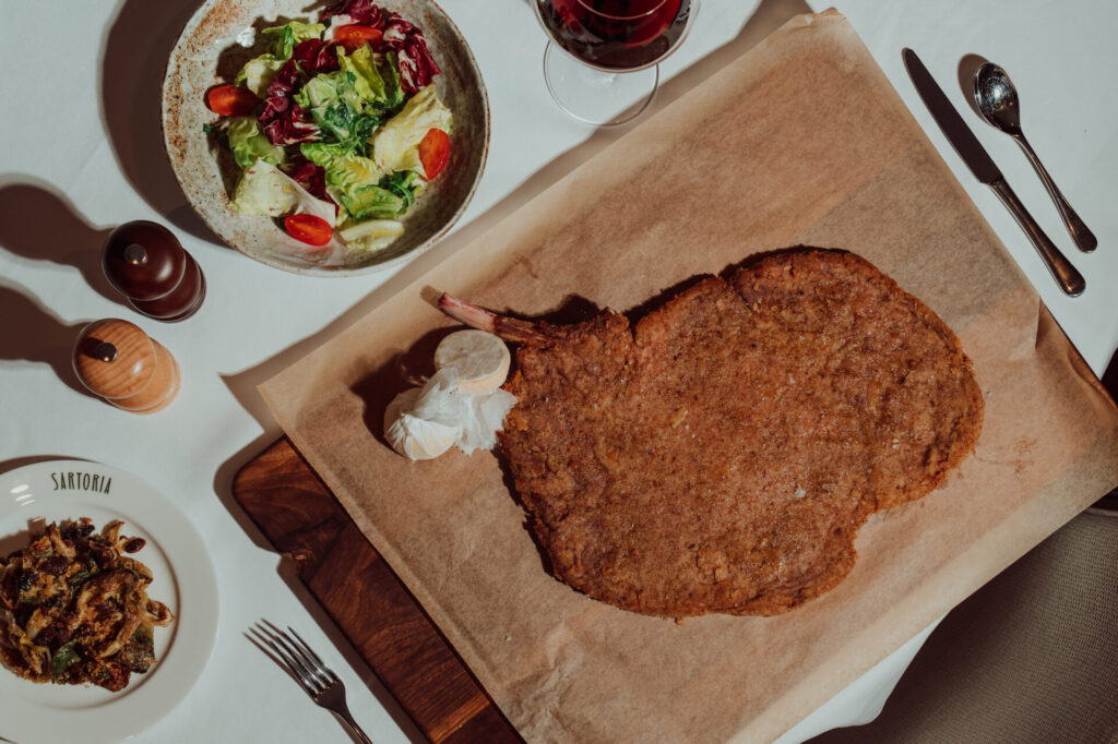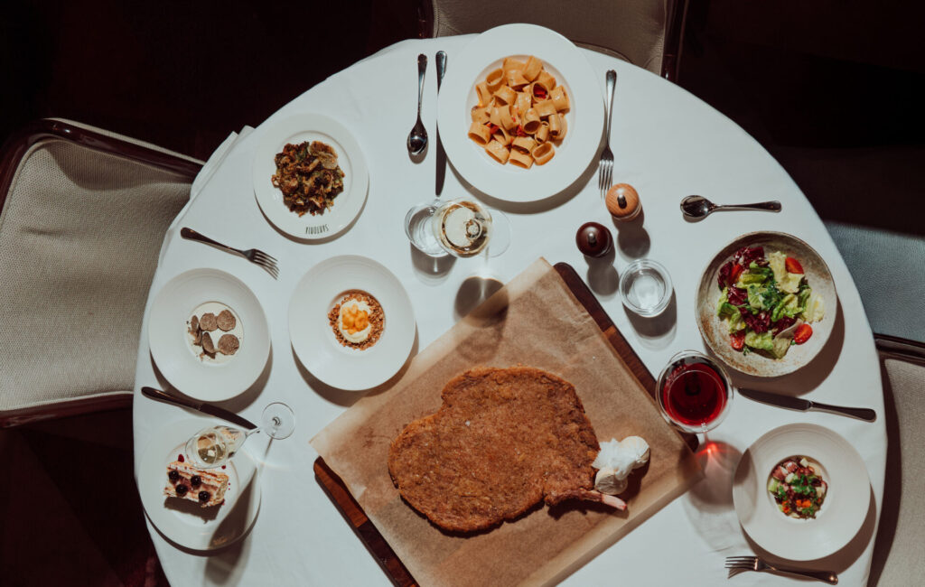 The Real Veal Milanese remains the signature. Designed for sharing, the golden cutlet is crisp outside, tender within, served with a bright tomato and lettuce salad.