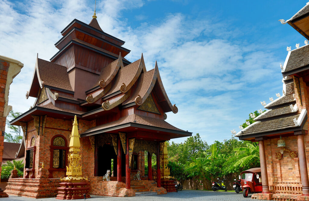 Walking through Ammatara Pura, you can’t help but be wowed by the design. Every building is rooted in Thai royal style, showcasing centuries of Southeast Asian craftsmanship. Intricate carved wooden screens, ornate fretwork pavilions, temple-style rooflines, and rich brickwork create a sense of grandeur reminiscent of an ancient royal court. The overall effect is immersive, as each building, pathway, and courtyard feels like part of a carefully curated story, blending history, art, and elegance.