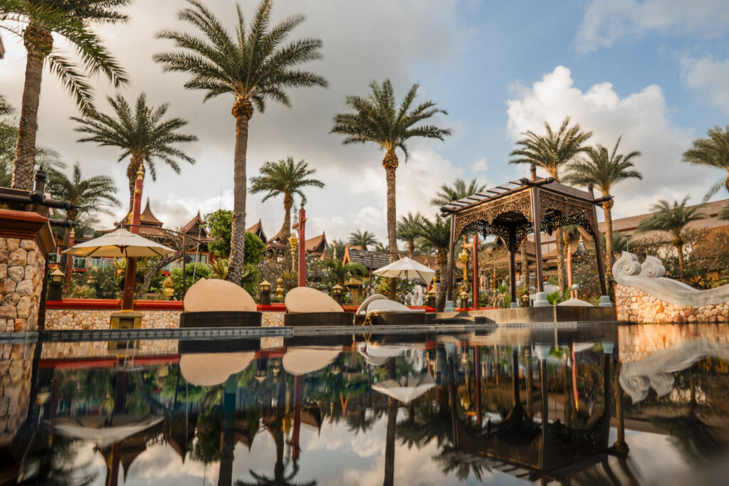 Authentic Asian art is displayed throughout the resort, from gilded sculptures and hand-carved wooden panels to traditional paintings that grace the villas and communal areas. Wandering the grounds feels like walking through a living gallery, and you can’t help but feel like every aspet has been thoughtfully designed. One particularly special feature is the on-site shrine, which is so beautifully constructed that visiting monks are known to stop by.